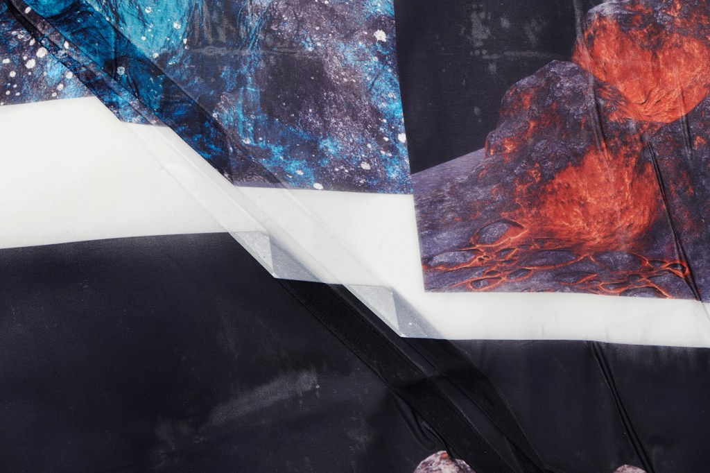 Pic: Lito Kattou, Mount K, T and J, 2019, Digital print on textile, textile hardener, custom made mounting tape, 180 x 140 cm, detail